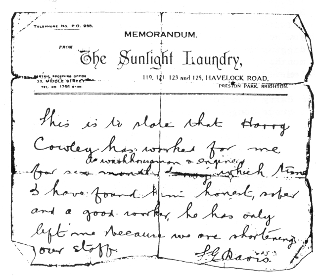 Rumours were already circulating in Brighton that other people knew quite a lot about the crime, if only they would talk. Harry took dozens of statements and spent hundreds of hours on the case. Armed with new evidence he petitioned his local M.P., Sir Cooper Rawson, who sent a full written report to the Home Office. At first, no grounds could be found for the conviction to be altered. At a second attempt, the Home Secretary spent a whole weekend reconsidering the facts of the case, and it is claimed that the King also queried the men’s guilt. The last minute reprieve was granted to the men although their innocence had still not been established.