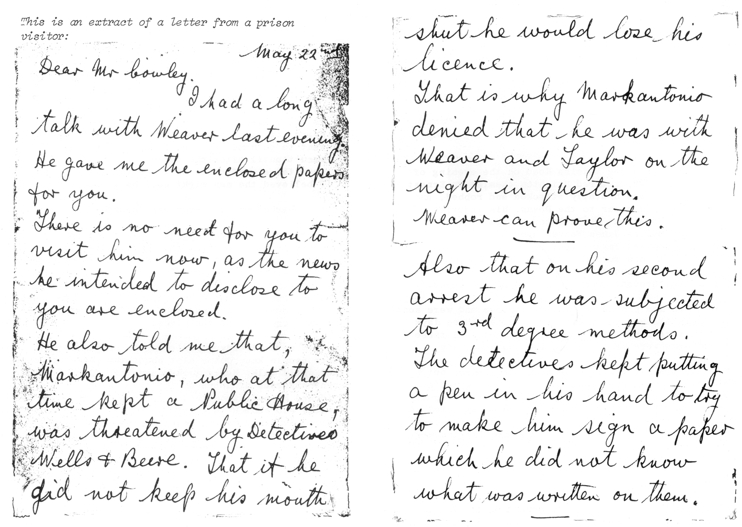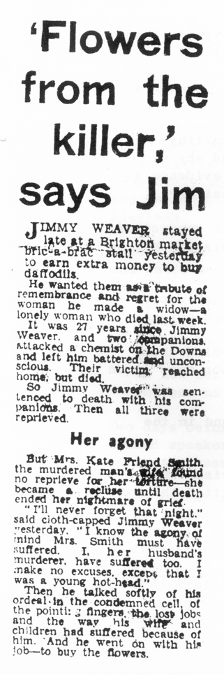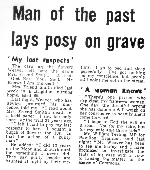 “I really don’t know why, but I decided to go down to the Police Court when Weaver and Taylor first appeared. I heard them remanded in custody. Then, as they were about to go downstairs from the dock to the cells, I saw Weaver turn to Taylor and I heard him say, “Why can’t we be tried today? I want to go home. We know nothing about this.” It wasn’t until after the appeal had been dismissed that the significance of these words struck home. I believed the men might well be innocent.”