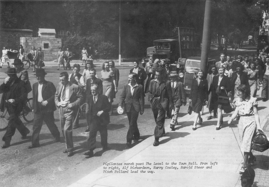 In the years between the wars the Cowley family lived at 3 Grove St, halfway up Albion Hill, in a well-established working class community. Harry Cowley’s political views were shaped by the needs of that community. Rents were high and large families crowded into the small terrace houses which ran up the hills north and east of The Level. Few breadwinners could rely on steady employment and families had to scrape and save to survive. They used their wits to find work or to get assistance from charities or the miserly Board of Guardians. Les McLenahan grew up in the 1920’s with a family of nine in two rooms on Albion Hill. His father was an invalid and his mother controlled the “Parish Purse-strings” of 27s 6d a week: