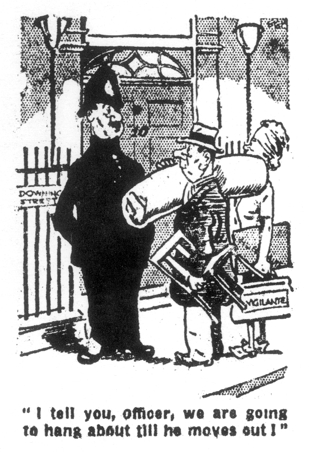 The courts also tried to stop the Vigilantes. After ejecting workmen and a landlord from a house he wanted, Harry was fined £31 for trespass by the Brighton County Court. But the police often turned a blind eye to Vigilante activities, and Harry even recalled an instance when he was putting furniture in a house and couldn’t manage a table, “So a policeman helped me in with it.” The press also lent a hand, helping Harry to decoy police “tails”, and writing glowing reports on the Vigilantes.